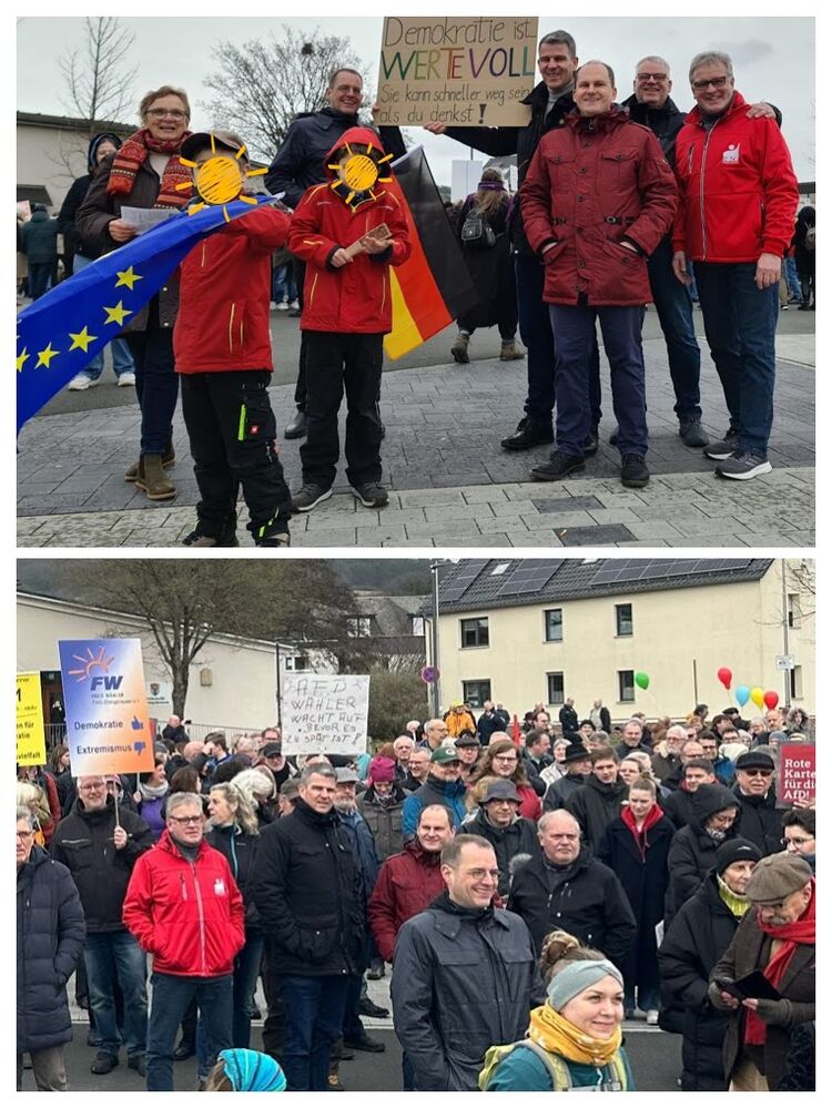 Wir waren mit von der Partie für die DemokratieDas hatte Ehringshausen lange nicht gesehen: 450 Teilnehmerinnen und Teilnehmer nahmen teil an der Kundgebung Alle zusammen gegen den Faschismus. Sie folgten dem Aufruf vieler örtlcher Vereine, der Kirchengemeinden, des DGB, von SPD, CDU, Bündnis 90/Die Grünen und Freien Wählern in Ehringshausen. Viele Genossinnen und Genossen waren unter den Demonstrierenden. Mit von der Partie war auch der Solmser Bürgermeister und SPD-Landratskandidat Frank Inderthal. Nachfolgend der Redebeitrag von unserem Ortsvereinsvorsitzenden David Rauber.