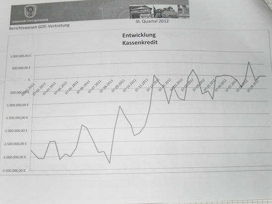 Damit es nicht wieder abwärts geht: Ehringshausen soll das Konto auch weiter nicht unnötig überziehenHaushaltsloch – was dann? Vor dieser Frage standen die Ehringshäuser Gemeindegremien angesichts des Gemeindehaushalts für 2013. Zurückgehende Gewerbesteuereinnahmen, niedrigere Schlüsselzuweisungen vom Land, eine gestiegene Kompensationsumlage und die Kosten für mehr Personal in den Kindergärten „bescherten“ der Gemeinde erstmals seit 2010 wieder ein Haushaltsloch. Rund 730.000 € wendet Ehringshausen 2013 mehr auf als es einnimmt.
