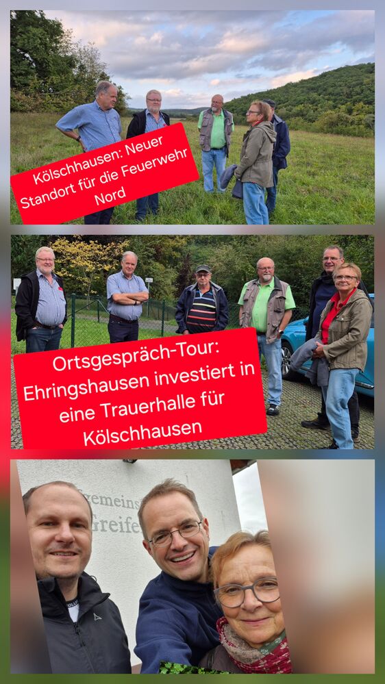 In Kölschhausen hat die Gemeinde in absehbarer Zeit gleich zwei bedeutendere Baustellen. Sie erläuterte Bürgermeister Jürgen Mock näher. Aus der SPD-Fraktion in der Gemeindevertretung waren Gertrud Rauber, Jochem Carle und David Rauber dabei. Im größten Ortsteil „auf der Lemp“ wird eine Trauerhalle errichtet. Eine solche Möglichkeit fehlte bisher in Kölschhausen anders als auf allen anderen Ehringshäuser Friedhöfen. In Vorbereitung ist auch der Bau eines neuen Feuerwehrgerätehauses für die Lemporte. Das wird eine der größten Investitionen in den kommenden Jahren. Zur Sprache kamen aber auch unerfreuliche Themen: So sorgten 2024 wie 2025 heftige Starkregen im Sommer für Wasser in Kölschhäuser Kellern. Was hier getan werden könnte, untersucht die Gemeinde laut Jürgen Mock.