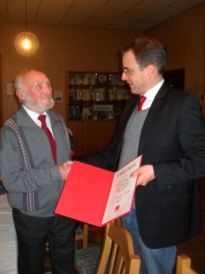 Da kam mit „TSG“ selbst der Landes- und Stellvertretende Bundesvorsitzende nach Dillheim: 200 Jahre SPD-Mitgliedschaft vereinten die Geehrten auf sich, denen Thorsten Schäfer-Gümbel die Aufwartung machte. Jeweils fünfzig Jahre sind Ursula Baumert, Bernd Heddrich, Günter Nell und Heinz Sattler Mitglied bei den Sozialdemokraten.